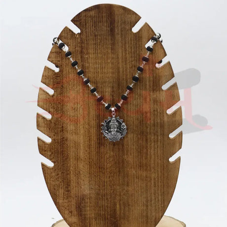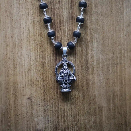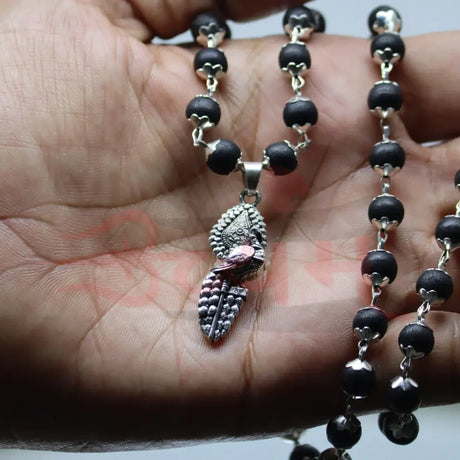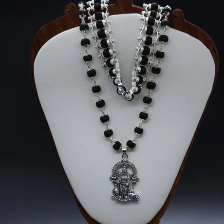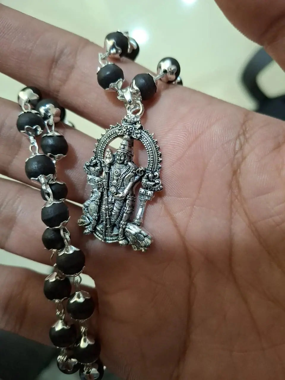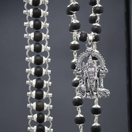 Silver Plated Karungali Mala with Lord Subrahmanya Pendant