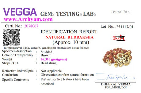 Every Rudraksh Mala and Pendant from Archyam undergoes a detailed authenticity check and comes with a certificate of purity and origin.