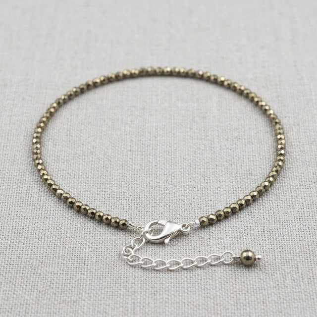Worn as an anklet, Pyrite works continuously with your body’s natural movement—helping to ground energy, balance vibrations, and promote positive momentum throughout the day.